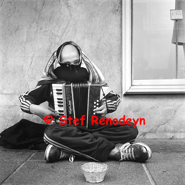 Stef Renodeyn heeft voor de fotoreeks De Mens die ik ben vier jaar in Antwerpen rondgezworven en mensen opgezocht aan de rand van de samenleving: thuislozen, verslaafden, bedelaars, sociaal mislukten. Hij bracht tijd met hen door en fotografeerde hen in de omgeving waar hij hen aantrof. ‘Deze mensen mogen dan al maatschappelijk mislukt zijn, als mensen zijn ze dat nooit om de simpele reden dat ze bestaan’, zegt hij zelf. Voor Renodeyn was dit project een diepgaand onderzoek naar het wezen van betrokkenheid en solidariteit, en tegelijk hiermee het bevragen van de eigen identiteit. Overigens vragen waar hij nog altijd geen antwoord op heeft. Een selectie van de foto’s werd gebundeld in het boek De Mens die ik ben (Roularta books). Momenteel fotografeert hij nog altijd de zelfkant in Antwerpen. U vindt zijn portfolio op www.stefrenodeyn.be.