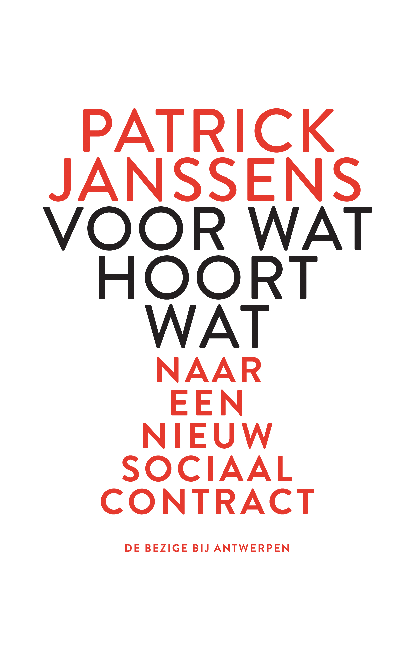 Het laatste boek van Patrick Janssens draagt een vlotbekkende titel, in fraaie letters gezet door typograafkunstenaar Dooreman: Voor wat hoort wat - en de ondertitel Naar een nieuw sociaal contract. Zou Janssens een shortlist met titels hebben gehad? Er zijn immers wel wat varianten op het thema te bedenken. Zoals: ‘Alleen de zon gaat voor niks op’, of ‘Je kunt niet leven van de hemelse dauw’, maar de eerste is allicht te veel Ecolo, de tweede te weinig scheiding van kerk en staat. Ook mogelijk, en vandaag bijzonder hip, was geweest om de titel in potjeslatijn te verpakken. En is ‘Voor wat hoort wat’ niet een volkse vertaling van het Latijnse ‘Do ut des’, van ‘Ik geef, opdat gij zult geven’?