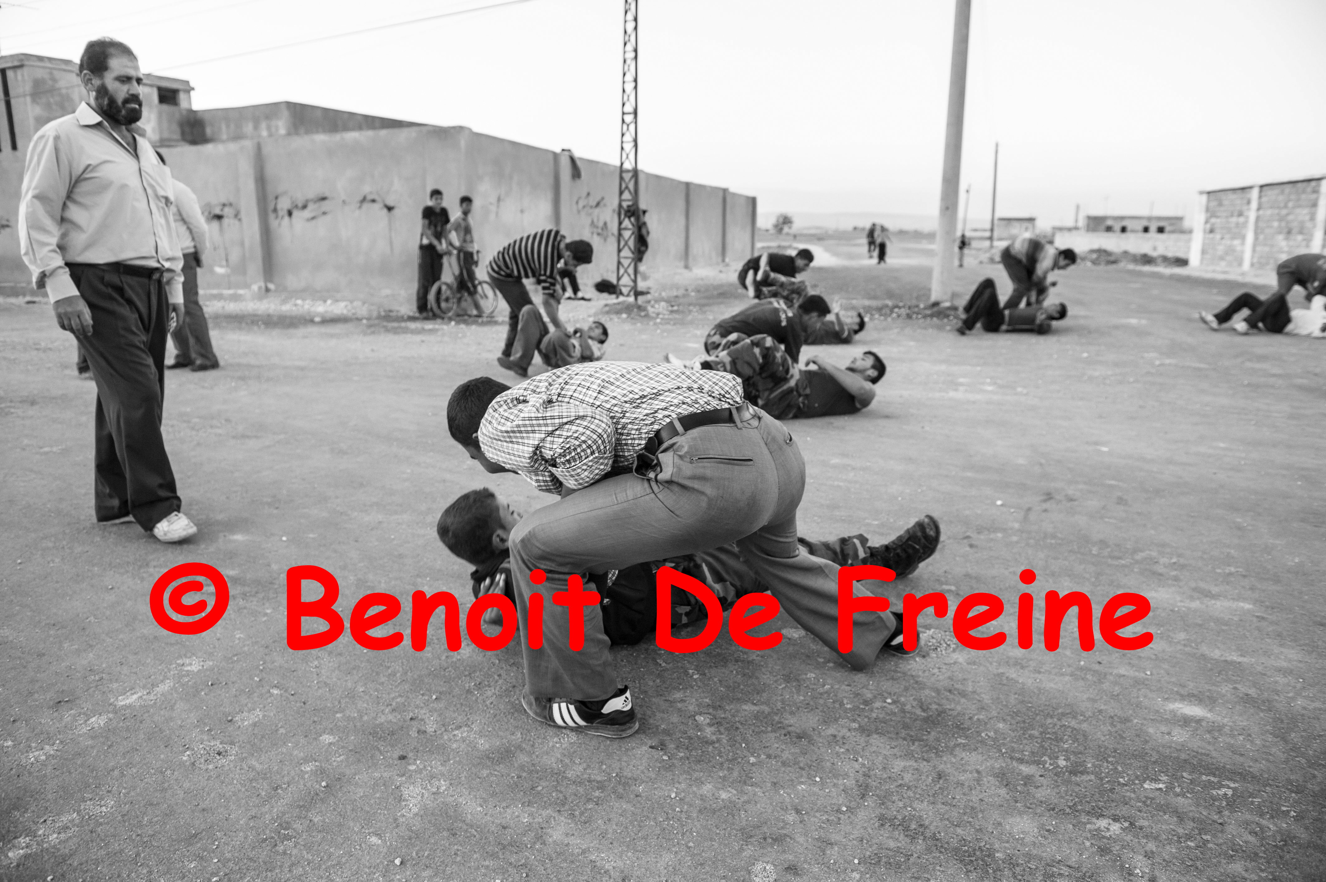 In Aleppo, met bijna drie miljoen inwoners de grootste stad van Syrië, wordt een vuile oorlog uitgevochten tussen het leger van president Assad en verschillende rebellengroepen. Freelance fotograaf uit Hasselt, Benoit De Freine, trok eind 2012 in gezelschap van een Waalse historicus die het land goed kent en een Italiaanse verslaggever naar Syrië. Niet specifiek voor een journalistiek verslag, gewoon omdat hij de oorlog van dichtbij wilde zien en vastleggen. De vrijheidsvechters brachten De Freine onder in hun militair hoofdkwartier; hij verbleef ook een aantal dagen in een woning van een groepje strijders. De Syrische rebellen willen niets liever dan dat de hele wereld ziet welke oorlog er momenteel woedt in hun land. Beschermd door een kogelvrij vest, maar verder onvoorbereid en zonder opschrift ‘Press’, brengt De Freine volgend beeldverslag. De volledige fotoreeks vindt u op: http://benoitdefreine.smugmug.com/.
