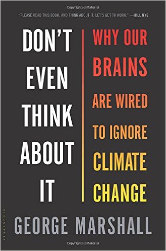 Het is een vraag die ik vaak hoor tijdens de workshops die ik (onder de naam van Low Impact Man) geef rond psychologie van verandering, creëren van draagvlak en de paradigmashift in ons hoofd: hoe is het mogelijk dat mensen zo apathisch reageren terwijl het klimaatprobleem zo duidelijk en dringend is? Alle cijfers, hockeysticks en dramatische beelden van woestijnen en ijsberen ten spijt, blijft de burger consumeren, blijft de bedrijfsleider vooral geïnteresseerd in winst en de politicus, tja wat doet die eigenlijk? Op een ietwat mysterieuze wijze glijden de steeds wanhopiger klinkende waarschuwing over de komende klimaatchaos van ons af, als water op het verenkleed van een eend. George Marshall schreef er een boek over: Don’t Even Think About It. Why Our Brains Are Wired to Ignore Climate Change.