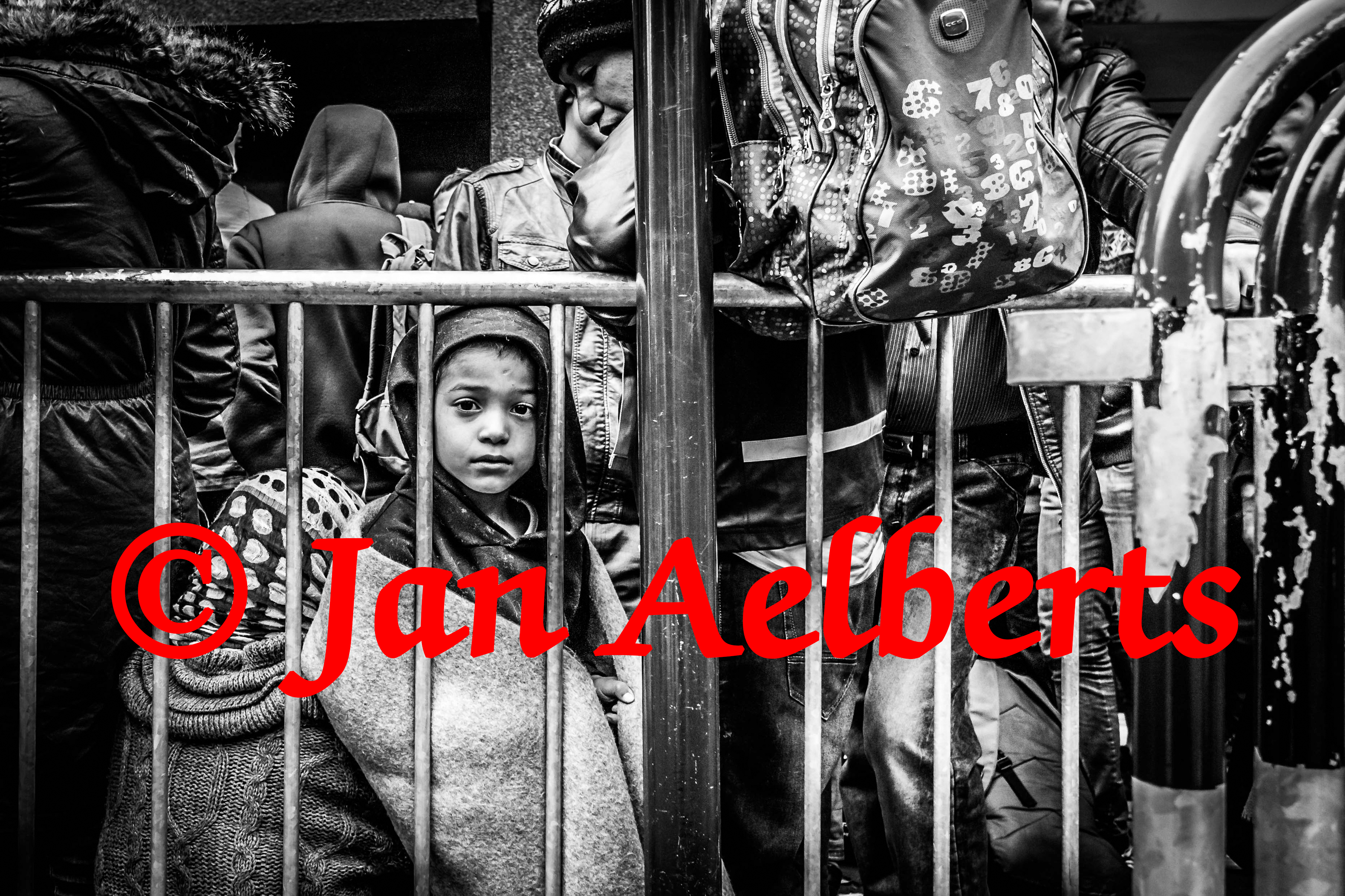 Jan Aelberts (1985) is journalist en fotograaf voor Het Laatste Nieuws. Hij bracht meerdere ochtenden, avonden en nachten door voor de Dienst Vreemdelingenzaken en in het ondertussen bekende Maximiliaanpark. De foto’s van vrouwen en kinderen die achter dranghekken aanschuiven, maakten duidelijk dat het lang niet enkel mannen zijn die hun land ontvluchten. Beelden van kamperende vluchtelingen op de middenbermen, middenin het drukke, Brusselse verkeer schetsten het schrijnende plaats tekort tijdens de vluchtelingenpiek. Van 27 februari tot 11 maart stelt hij, samen met fotograaf Benoit De Freine, een deel van zijn werk tentoon in De Foyer, Hasselt. Meer foto’s staan op zijn website: www.janaelberts.be.