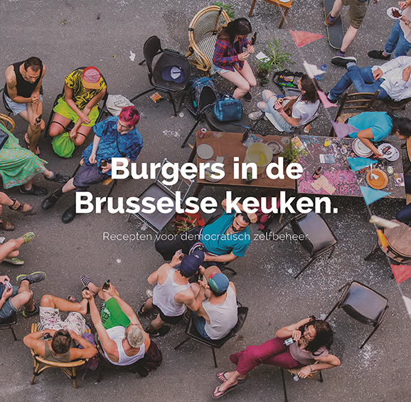 Dit zeer inspirerend, soepel geschreven en verzorgd uitgegeven boekje – ook het bijhorend fotomateriaal – is opgesteld als een lange metafoor waarin 'recepten voor democratisch zelfbeheer' worden aangeboden zoals ze door burgers in de Brussels keuken werden ontwikkeld. Een aantrekkelijke culinaire verpakking voor een hot maatschappelijk item. Democratisch beheer. Sí, se puede, yes we can, ja het kan anders. De rode draad door deze publicatie is besluitvorming onttrekken aan experten, multinationals en hoofdkwartieren van partijen om ze – op z'n minst gedeeltelijk – terug te geven aan de betrokken burgers. Het boek opent met een algemeen gedeelte, 'Een eigen draai aan democratie', waarin in zeer heldere bewoordingen toegelicht wordt wat grote woorden als 'deliberatieve of participatieve democratie' en 'commons' betekenen. Daarna word je als lezer mee de keuken ingetrokken van acht Brusselse initiatieven van zeer uiteenlopende aard, maar die als raakpunt hebben dat ze van onderuit ontstaan. Elk 'recept' krijgt zijn eigen 'ingrediënten' en 'bereidingswijze' mee en wordt dan geïllustreerd met een of twee praktijkvoorbeelden. Wat wordt er zoal opgediend? Een Pizza 'la casa cocreativa' in verband met sociale huisvesting, een groentesoep met zelfgemaakte tripartite bouillon over gronden en panden, een salade Bruxelloise 'Jardin Citoyen' over groen in de stad, een tajine van gemengde burgers met zilverstukkenrijst over burgerpanels, borrelhapjes van kennis met de smaak van fijnstof over milieu en burgerwetenschap, tijdballetjes à la sauce locale over time banking, pittige 'électrique' over energie(coöperaties) en om af te sluiten een online dessertenbuffet over online participatie.