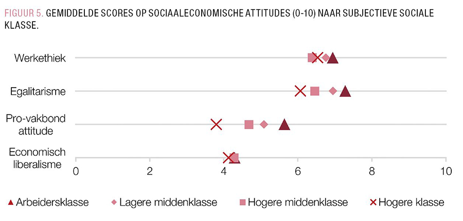 Denken burgers anders over sociale en politieke kwesties naargelang hun subjectieve positie op de sociale ladder? Om deze vraag te beantwoorden gaan we na in welke mate 'de (lage en hoge) middenklasse' verschilt van de arbeidersklasse op het vlak van een aantal relevante sociale ervaringen en maatschappelijke houdingen (telkens gemeten op een 0 tot 10 schaal).