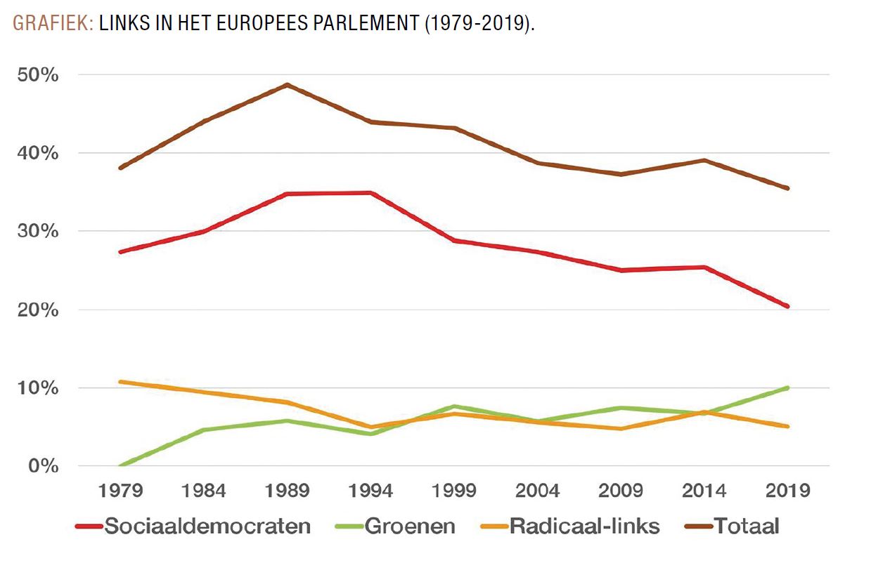 Relatief gesproken deed geen enkele strekking in het Europees Parlement het zo slecht als radicaal-links. Hoewel peilingen haar een jaar voor de verkiezingen soms de vierde plek toebedeelden, en ook in de directe aanloop naar 26 mei een kleine winst verwacht werd, raakte GUE/NGL een kwart van haar 52 zitjes kwijt. Een ronduit belabberd resultaat. De eerste Belgische Marxist in het Europees Parlement, Marc Botenga, ziet de helft van zijn Spaanse en al zijn Italiaanse collega's verdwijnen, terwijl de Nederlandse, Ierse, en Tsjechische delegaties van 3 naar 1 vertegenwoordiger terugvielen. Ook Jean-Luc Mélenchon en La France Insoumisebleven ver onder de verwachtingen. De Insoumishadden voor de Europese verkiezingen de lat op 11% gelegd, een heel eindje onder Mélenchons persoonlijk resultaat bij de presidentsverkiezingen. Maar met nauwelijks iets meer dan 6% werd het zelfs ondanks de lage verwachtingen een enorme sisser. Yanis Varoufakis en zijn Europese Lente bleven in Duitsland ver onder de drempel (die minder dan een procent bedraagt), en kwamen in Griekenland enkele tientallen stemmen tekort voor een zitje. Geen vertegenwoordiging voor DiEM25 in het Europees Parlement.