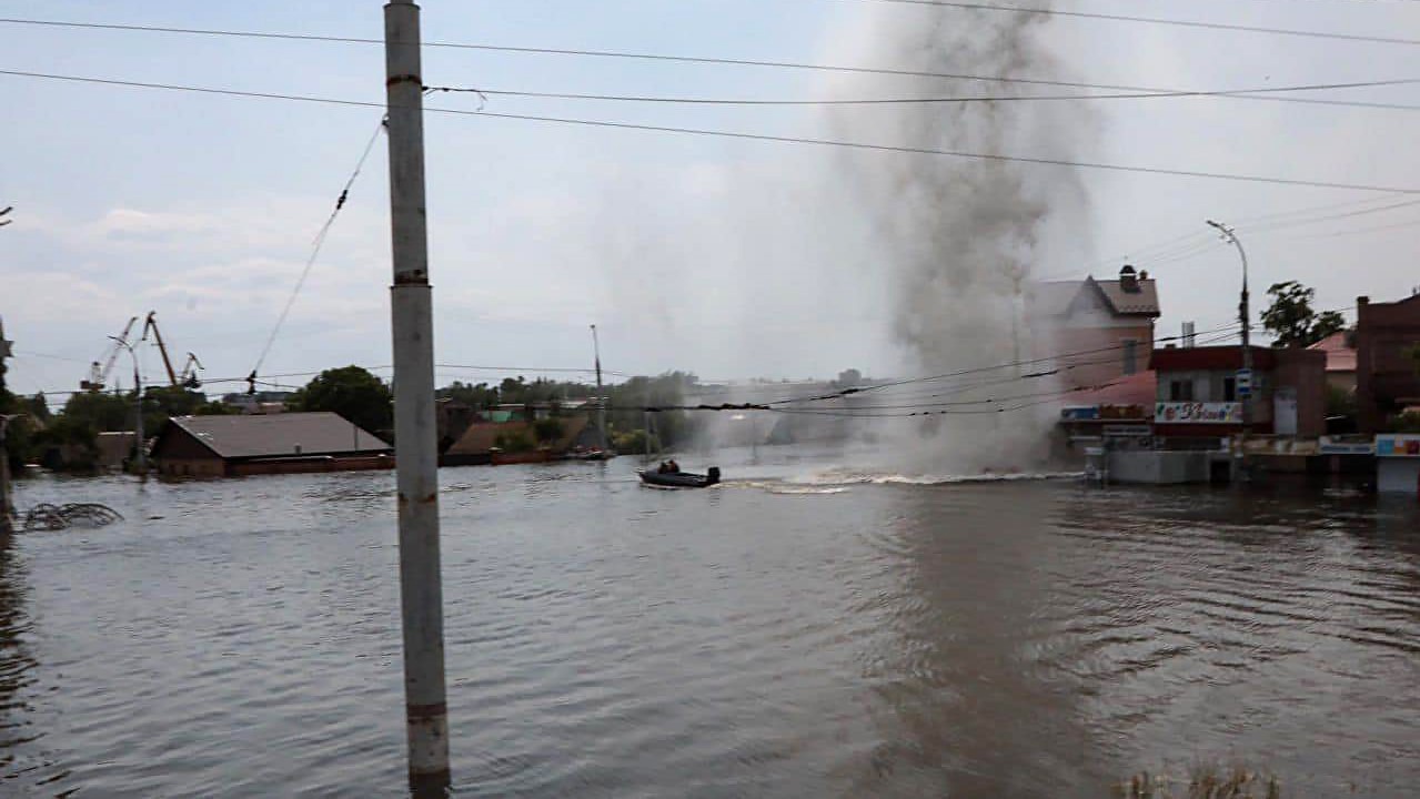 'Volgens de metingen van vanochtend ligt het waterpeil gemiddeld 5,61 meter hoger dan normaal. Zo'n 600 vierkante kilometer land in de regio Cherson is nu ondergelopen.' Zo luidde het bericht van de gouverneur van de getroffen regio in het zuiden van Oekraïne, Oleksandr Prokudin, vroeg in de ochtend op donderdag 8 juni, twee dagen na de instorting van de dam van de Kachovka waterkrachtcentrale.