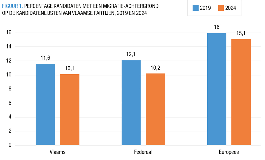 In Brussel heeft 22,6% van de kandidaten op de kandidatenlijsten voor het Vlaams Parlement een migratie-achtergrond, terwijl dat in West-Vlaanderen slechts 5,2% is.